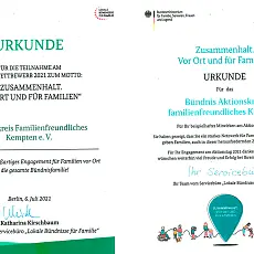 Urkunde - Ausgezeichnetes Bündnis